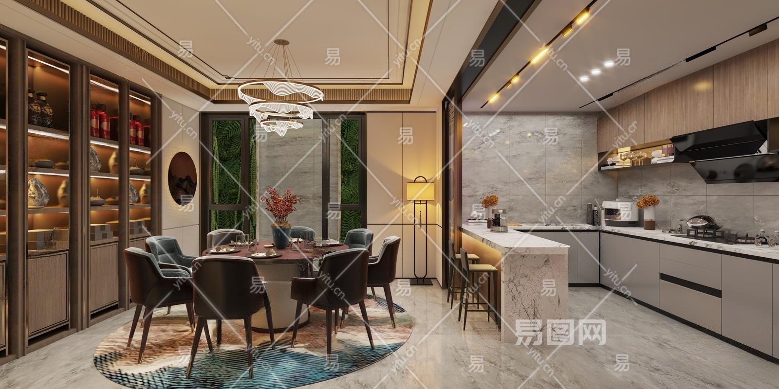 当前的位置:首页 > 3D模型 > 家装空间 > 餐厅 > 新中式别墅餐厅3D模型下载
