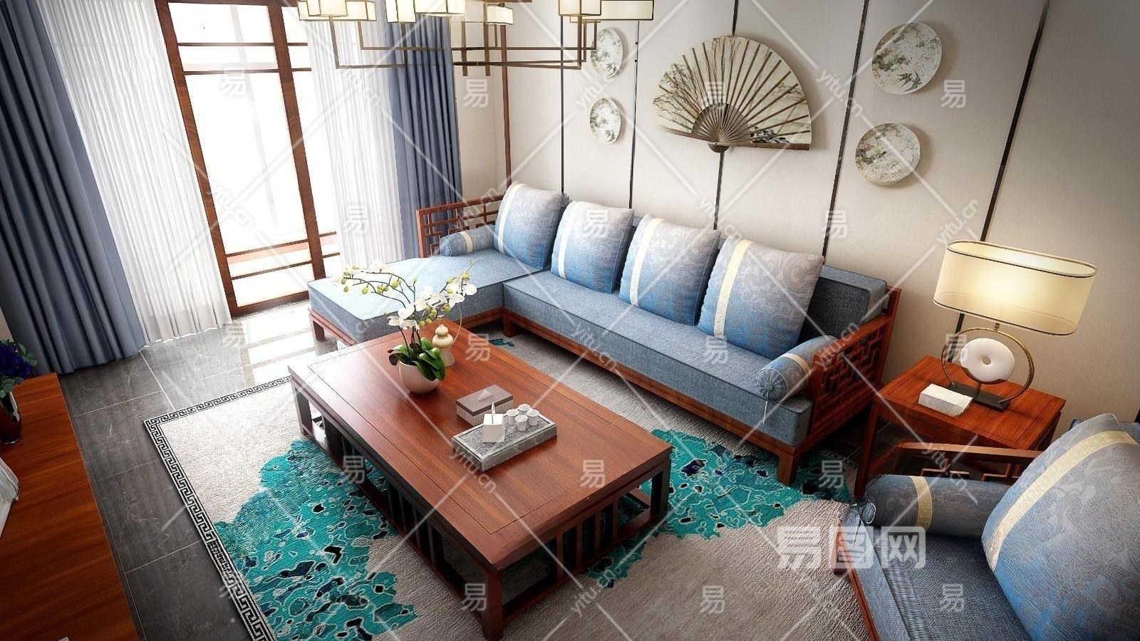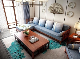 中式传统中式客餐厅沙发茶几组合3D模型下载