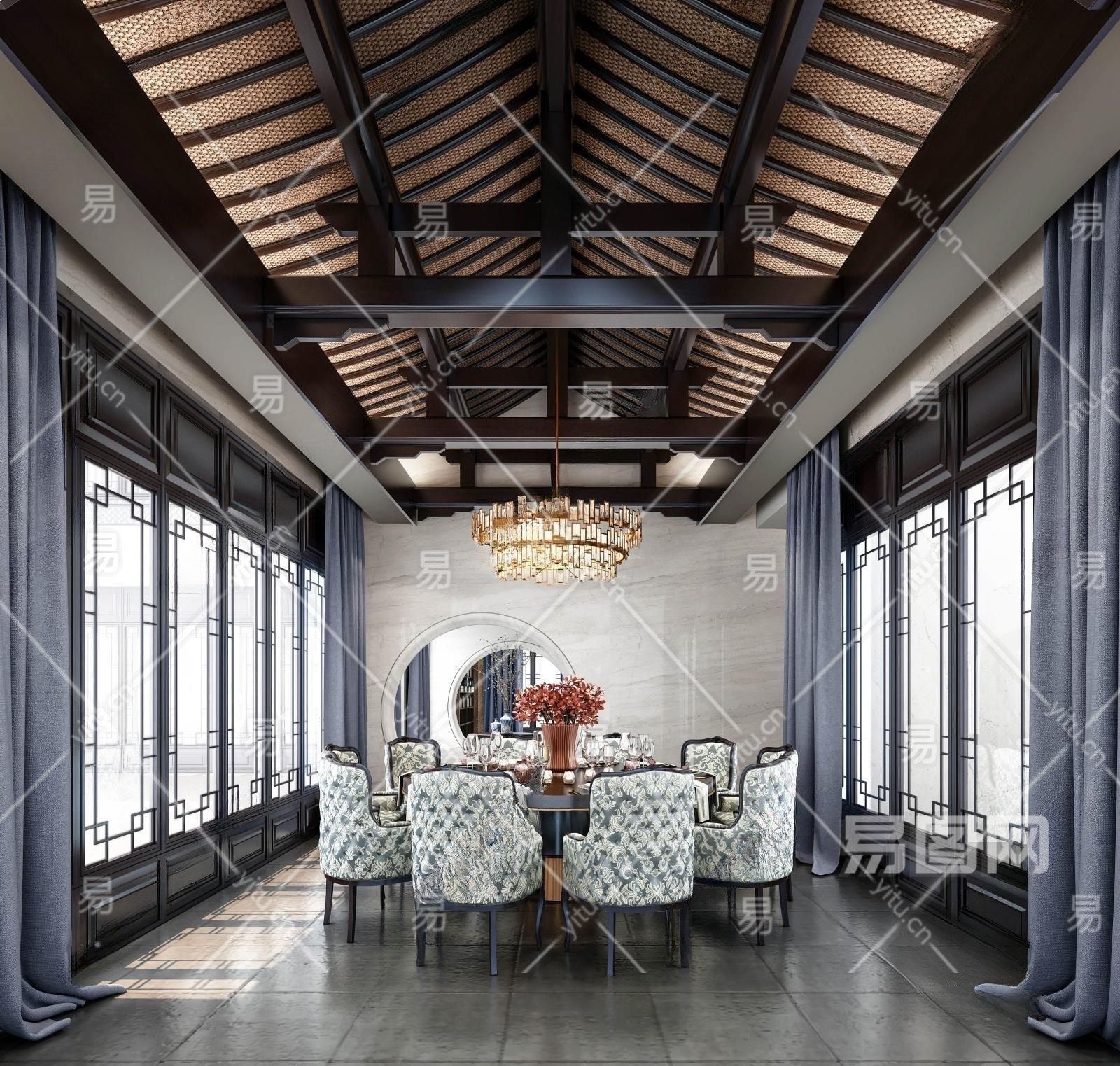 传统中式餐厅3D模型下载