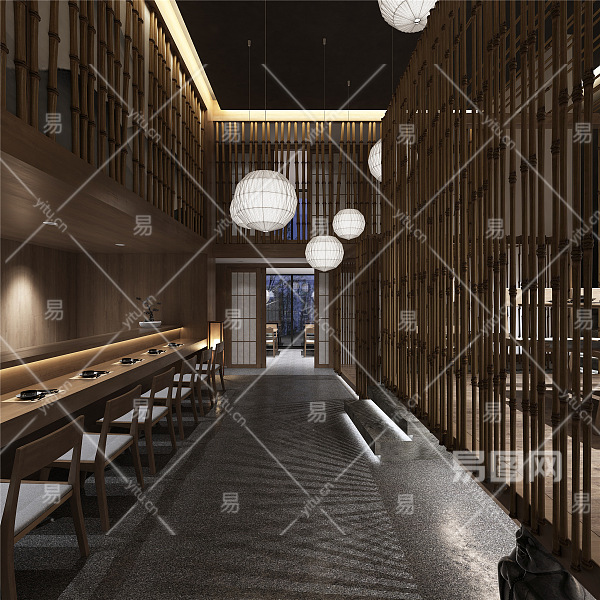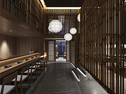 日式餐厅 榻榻米 吊灯 金属屏风 禅意餐桌椅