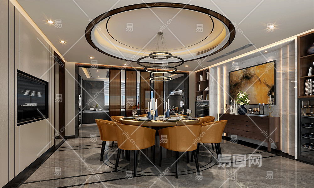 当前的位置:首页 > 3D模型 > 家装空间 > 餐厅 > 新中式餐厅 餐桌 餐椅