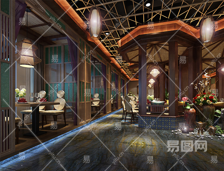 新中式餐厅 主题餐厅 餐桌 餐椅 饭店