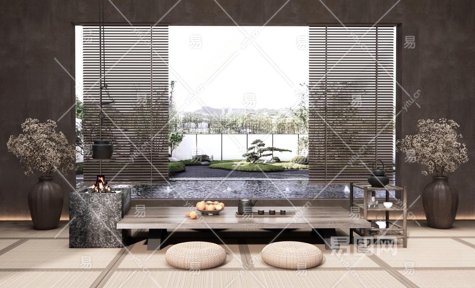 侘寂榻榻米茶室3D模型下载