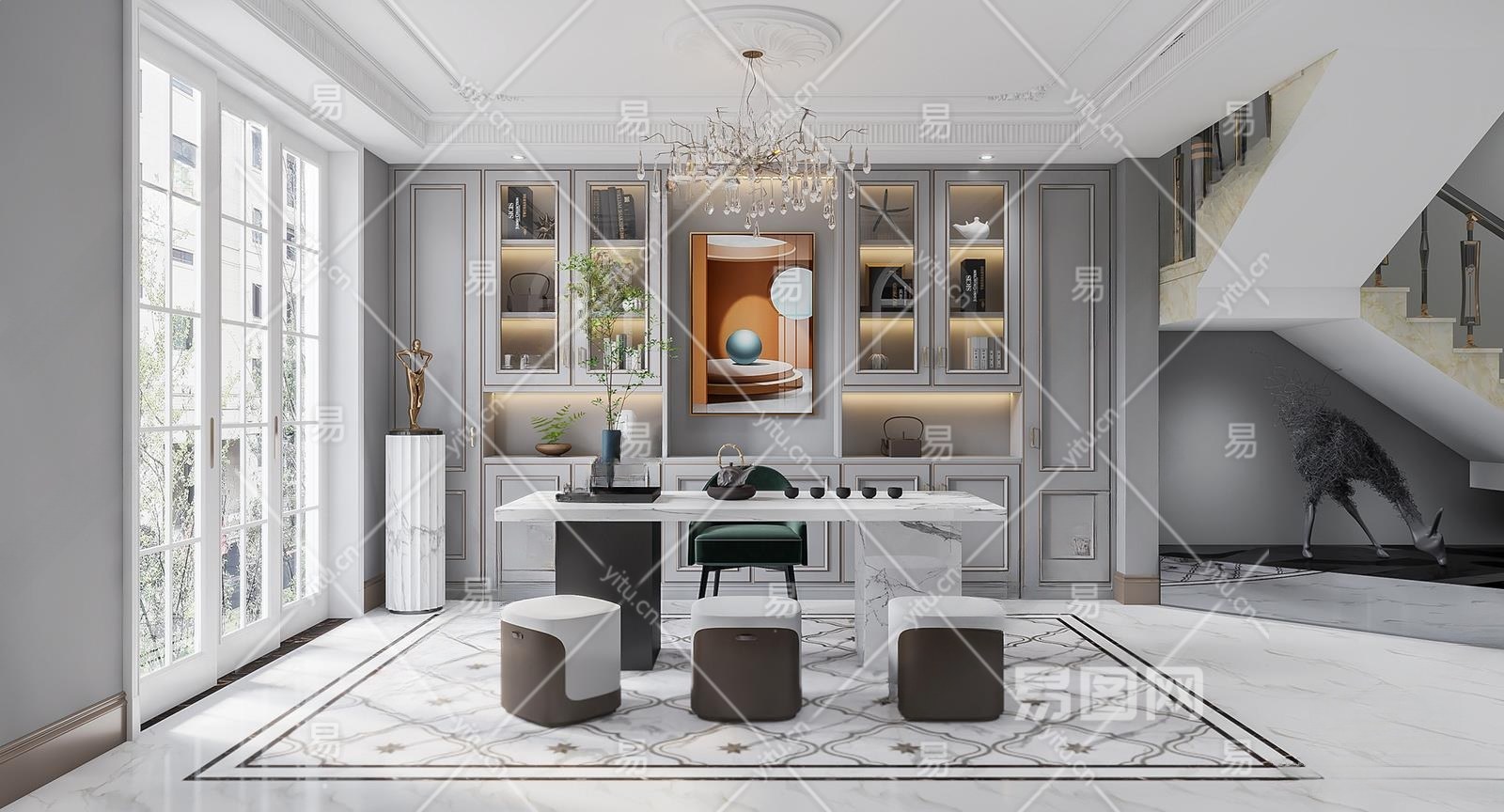简欧茶室3D模型下载