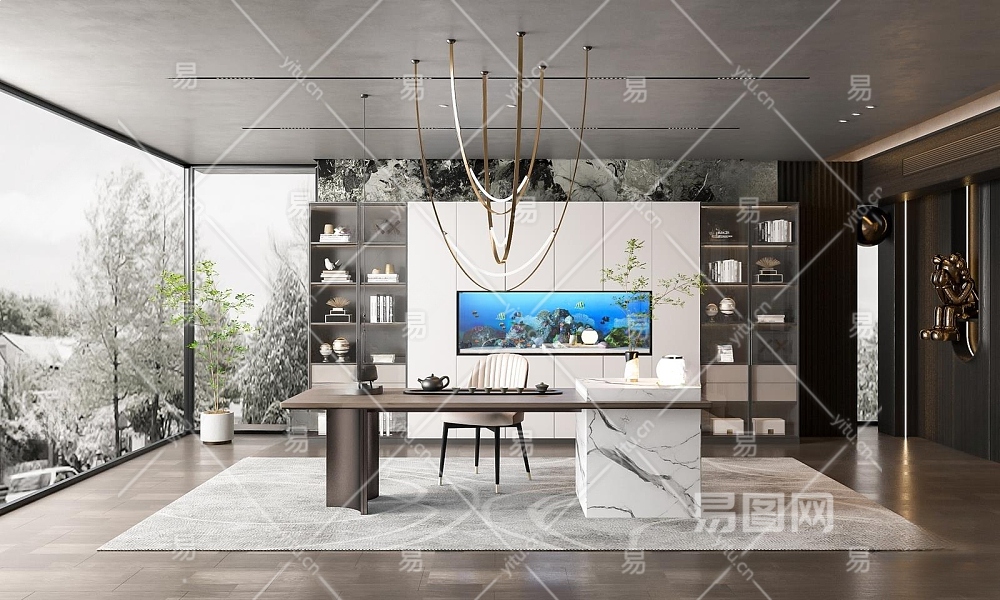 现代茶室3D模型下载