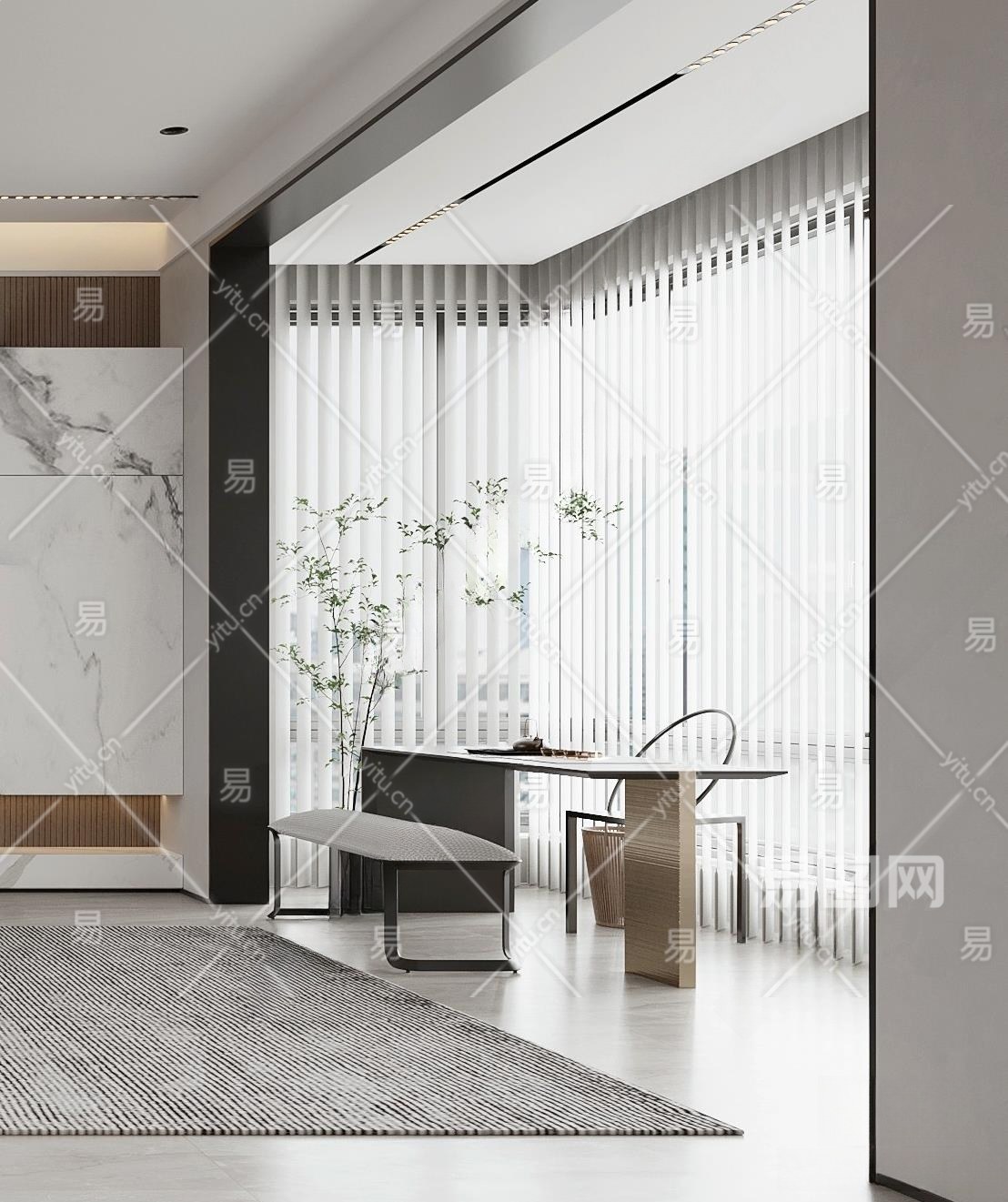 现代茶室3D模型下载