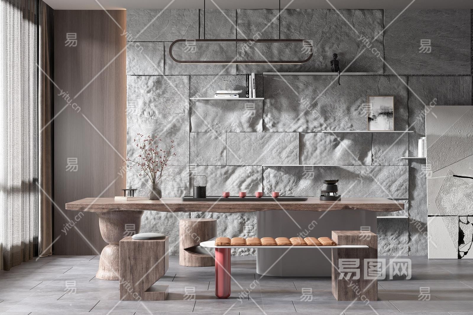 现代茶室3D模型下载