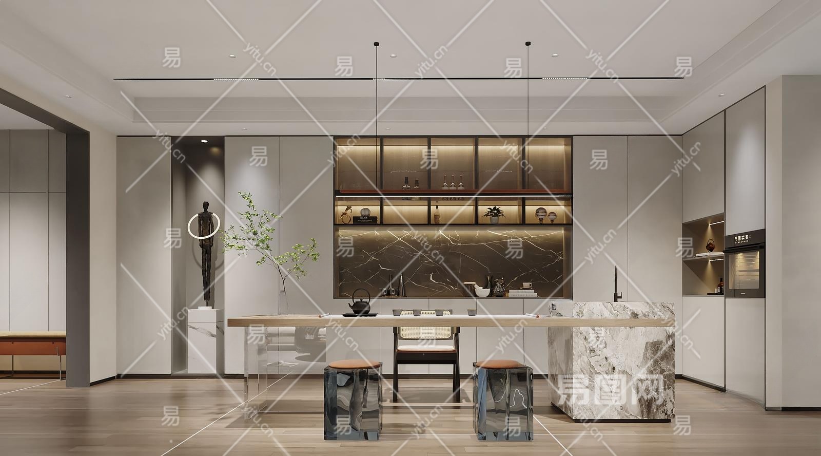 现代茶室3D模型下载