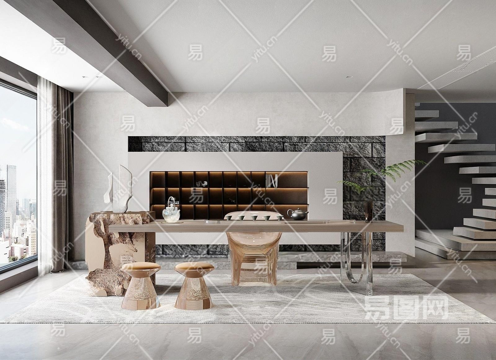 现代茶室3D模型下载