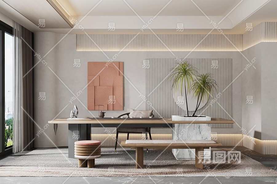 现代茶室3D模型下载
