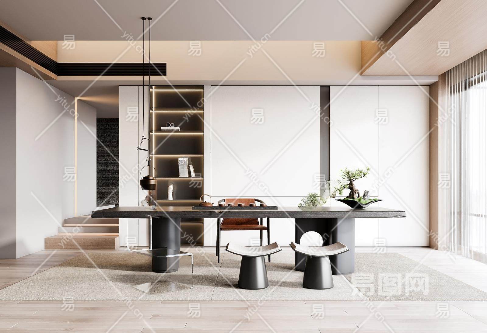 现代茶室3D模型下载