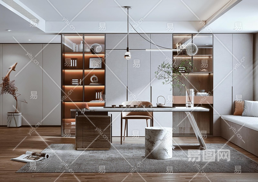 现代茶室3D模型下载