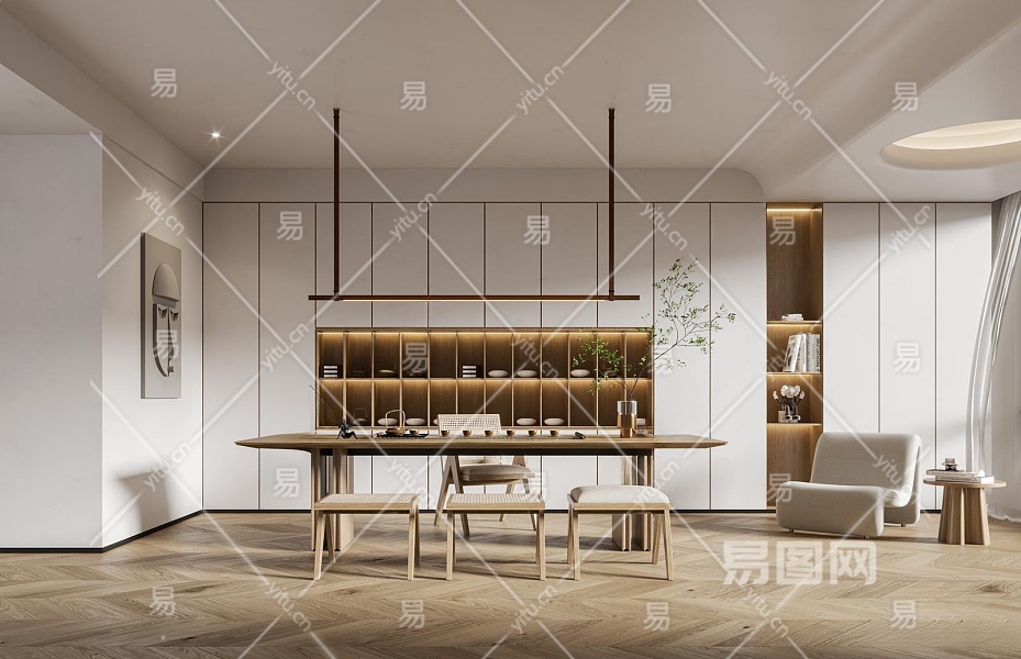 现代茶室3D模型下载