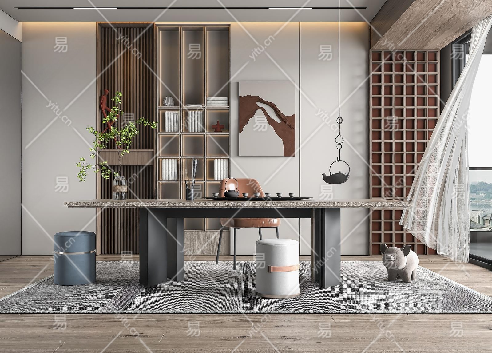 现代茶室3D模型下载