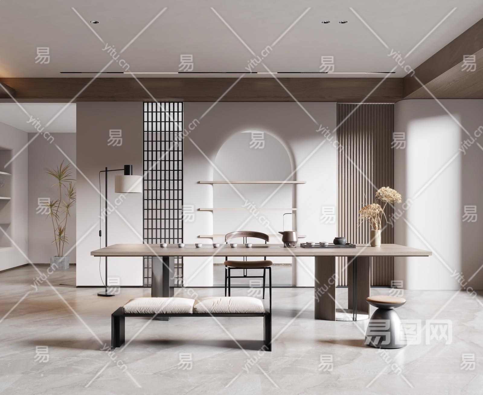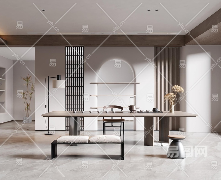 现代茶室3D模型下载