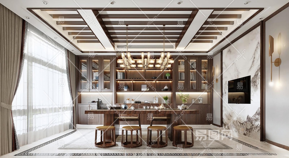 新中式茶室3D模型下载
