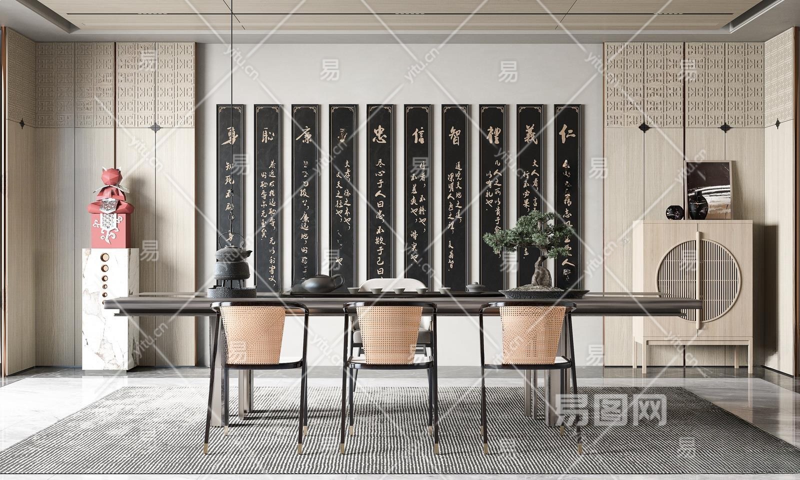 新中式茶室3D模型下载