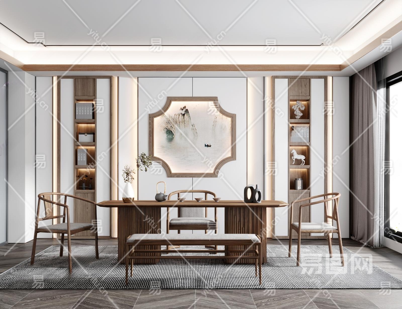 新中式茶室3D模型下载