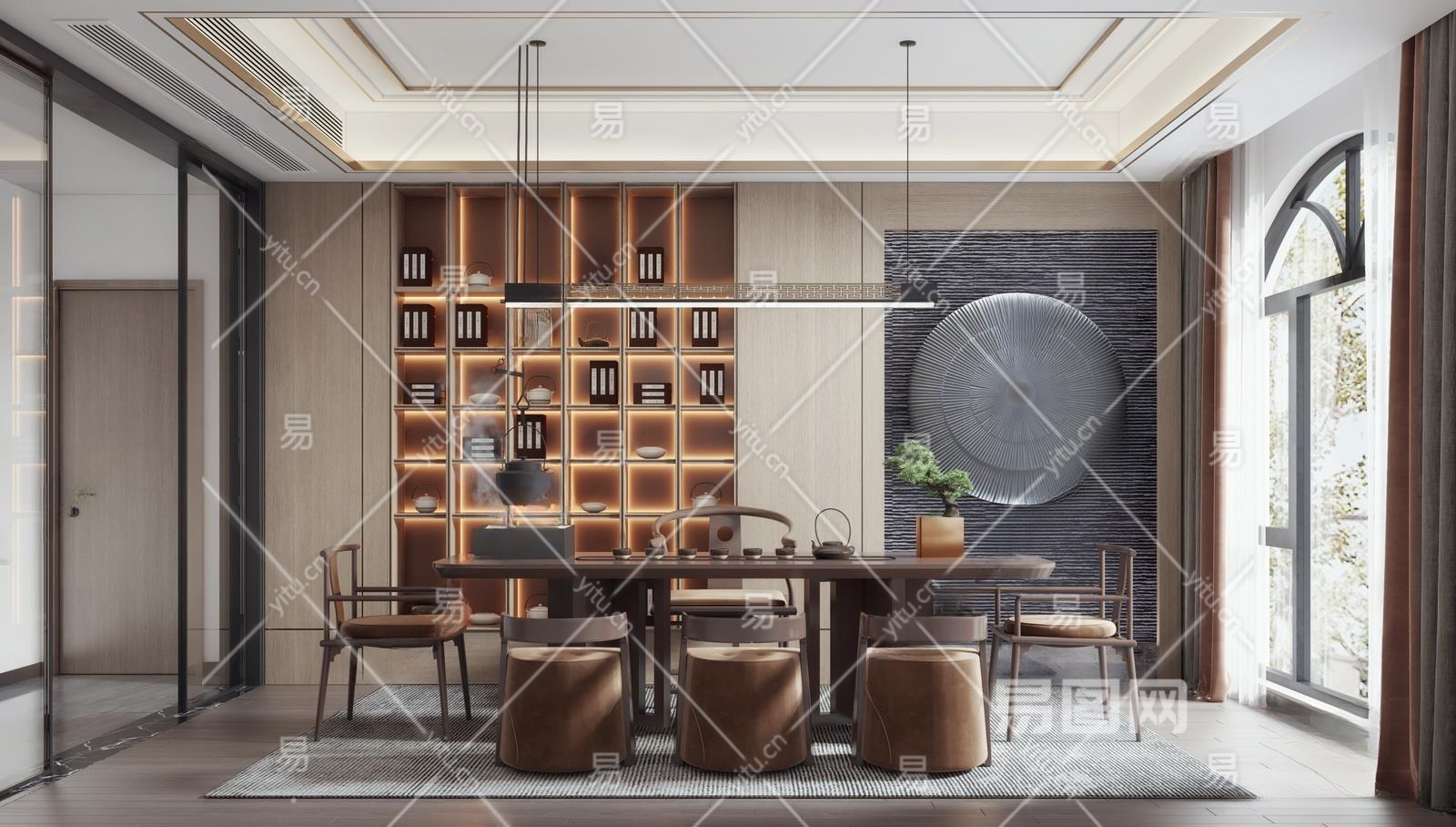 新中式茶室3D模型下载