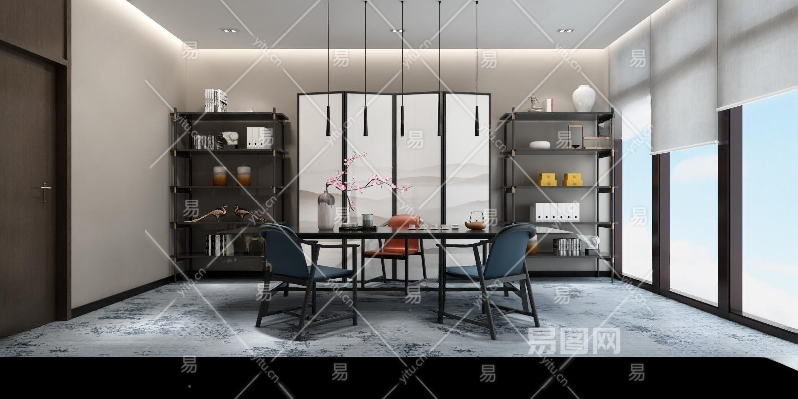 新中式茶室3D模型下载
