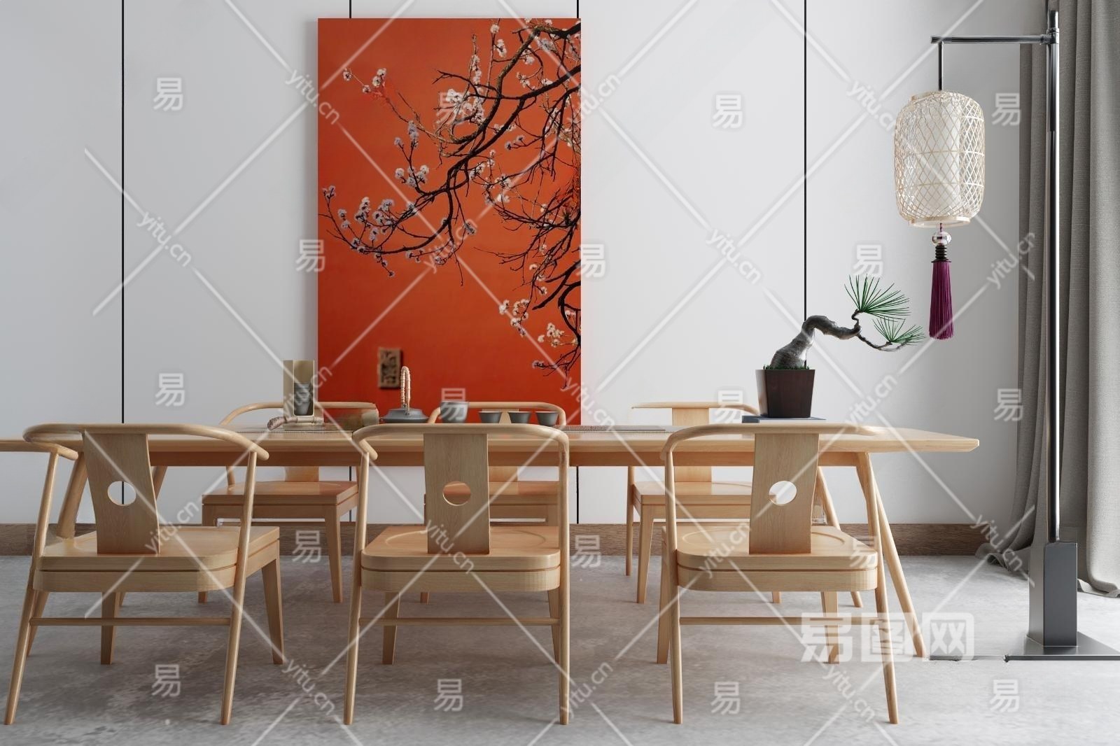 新中式茶室茶楼娱乐休闲洽谈区3D模型下载