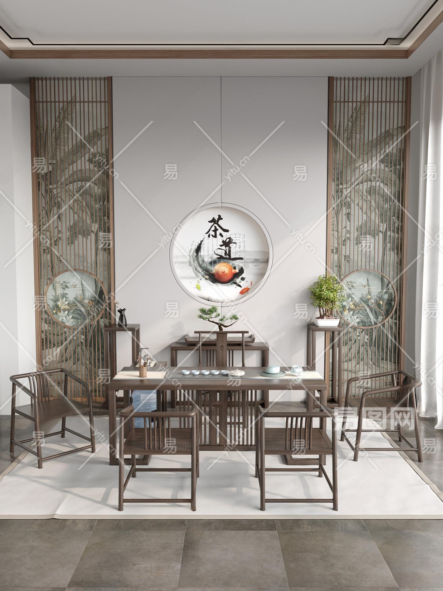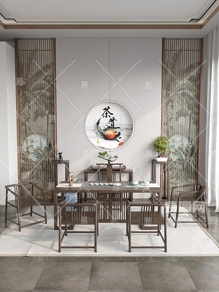 新中式茶室3D模型下载