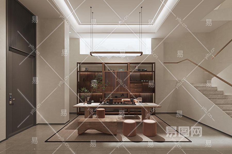 新中式茶室3D模型下载