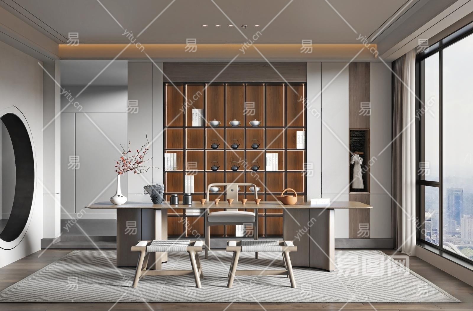 新中式茶室3D模型下载