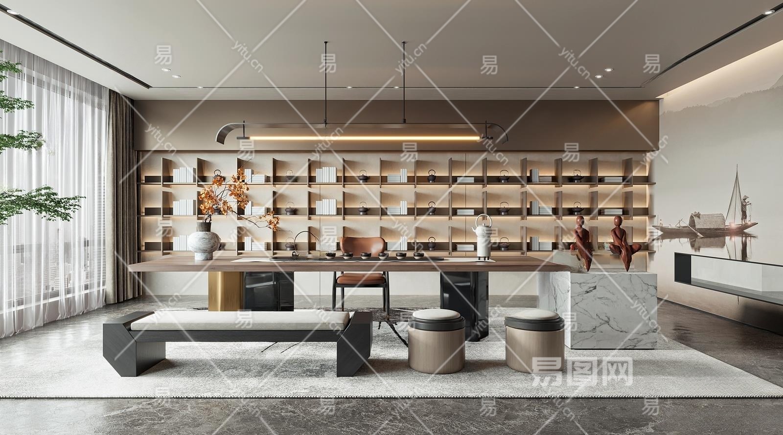 新中式茶室3D模型下载