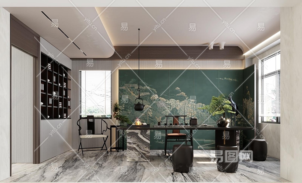 新中式茶室3D模型下载
