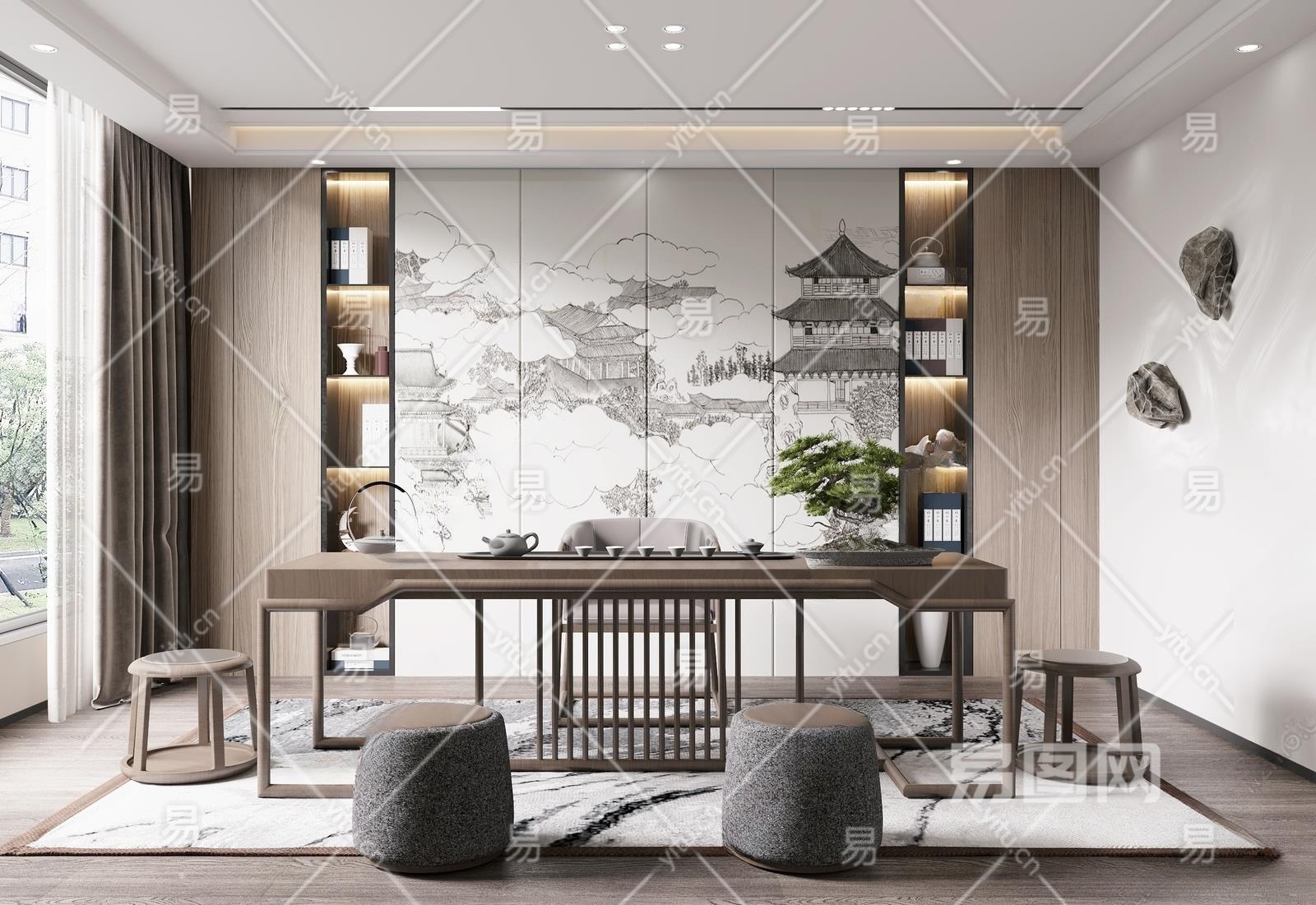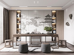 新中式茶室3D模型下载