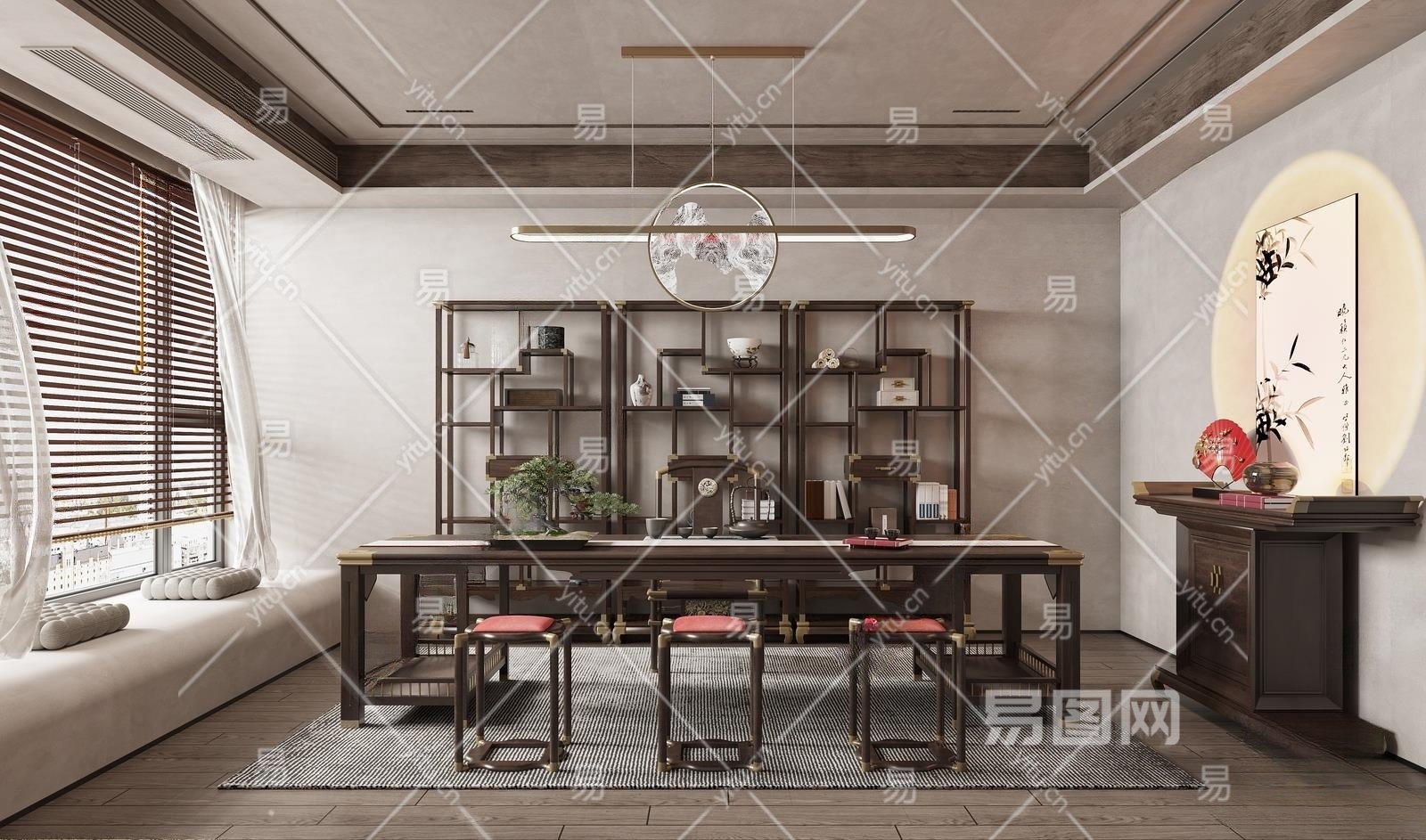 新中式茶室3D模型下载