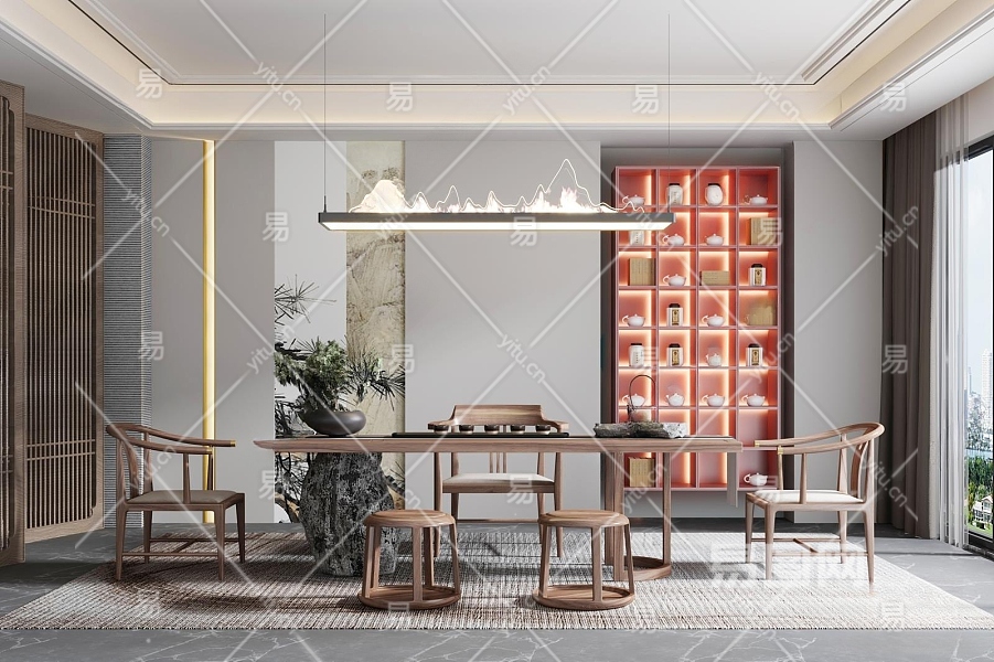 新中式茶室3D模型下载