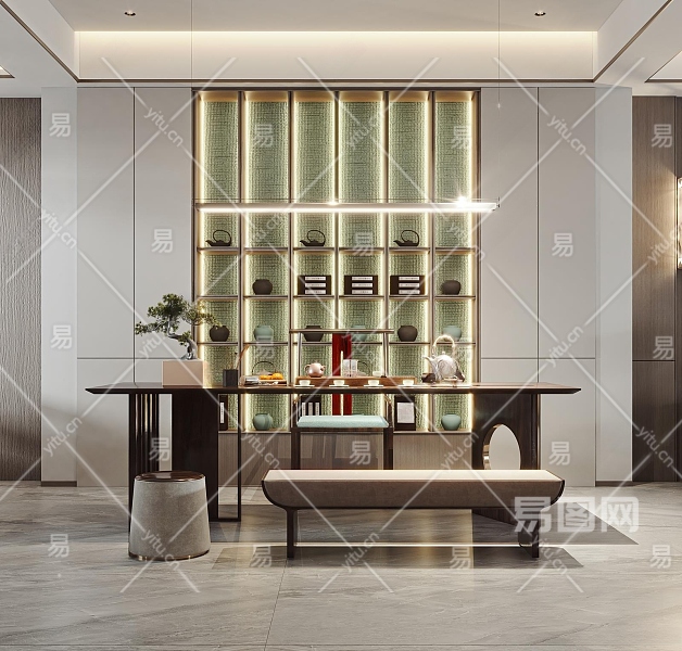 新中式茶室3D模型下载