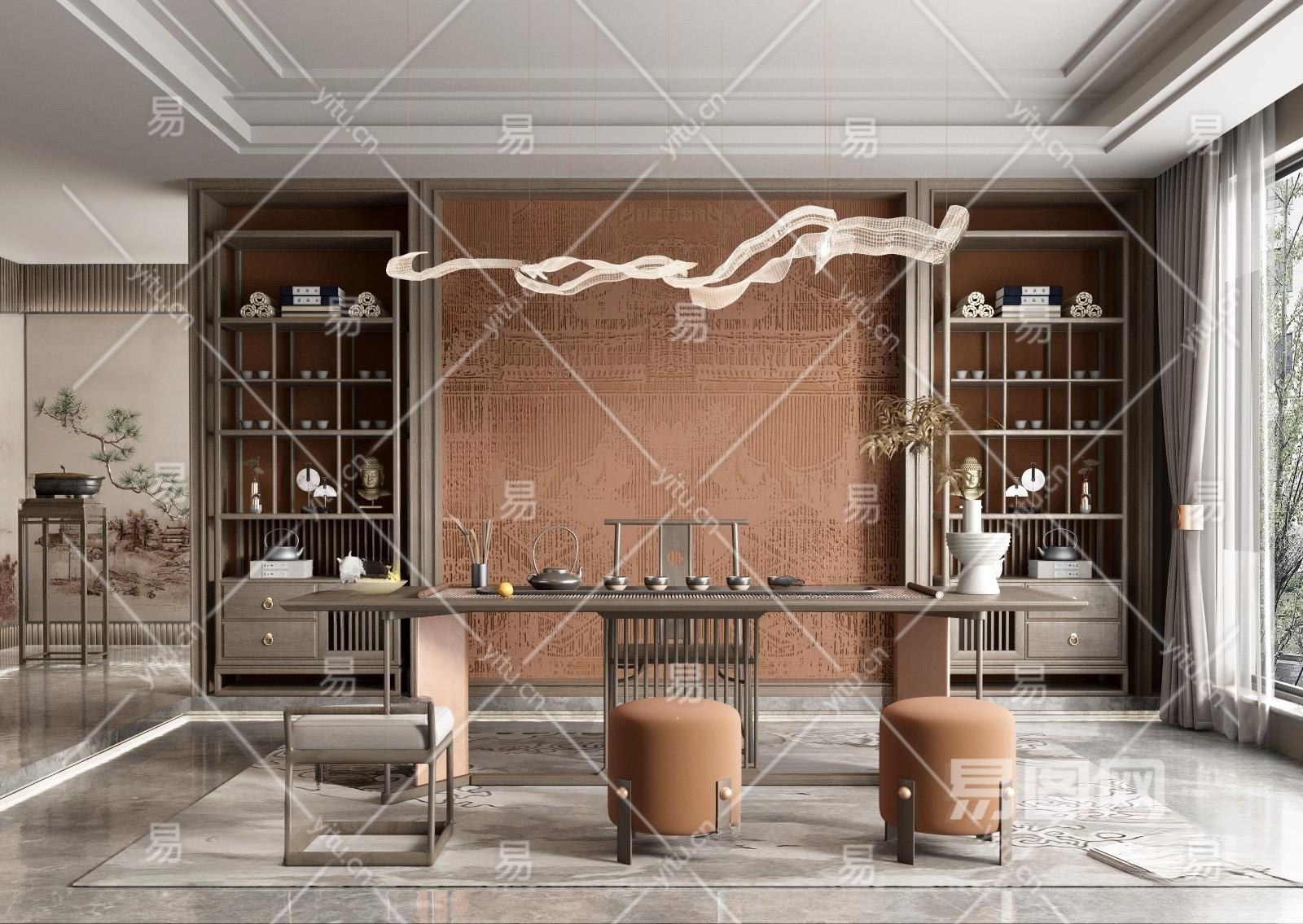 新中式茶室3D模型下载