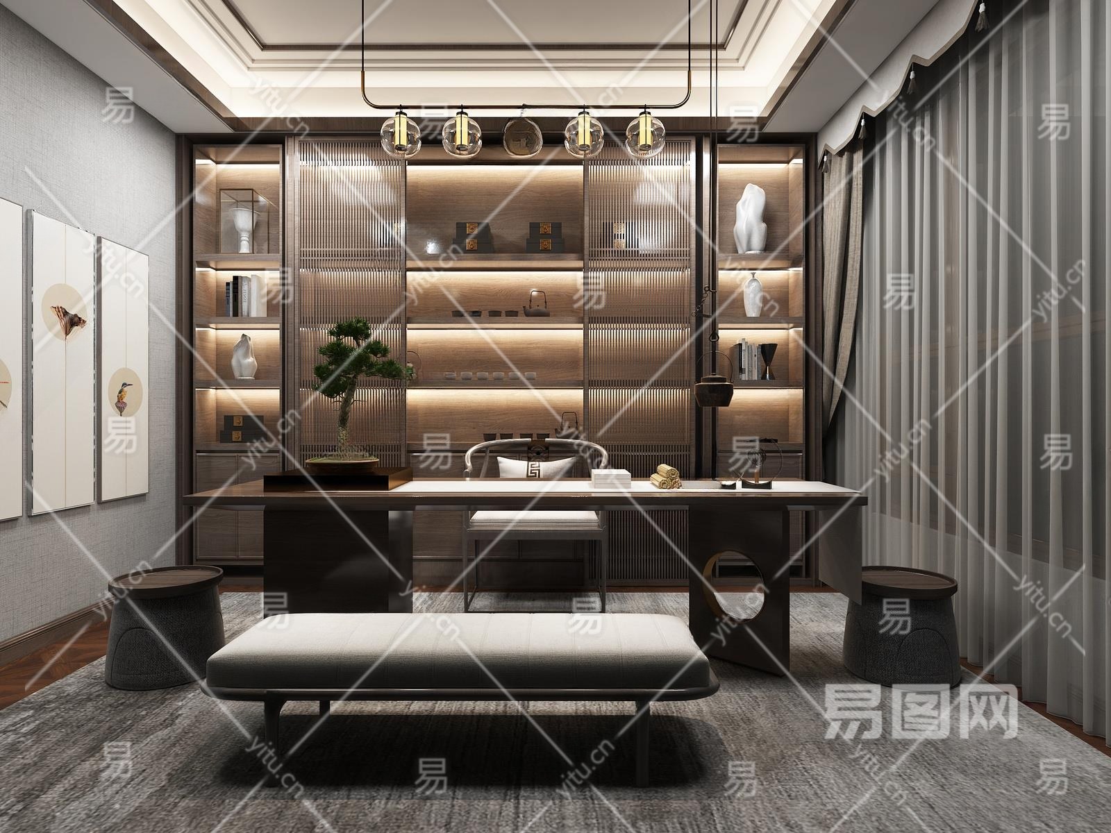 新中式风格茶室3D模型下载