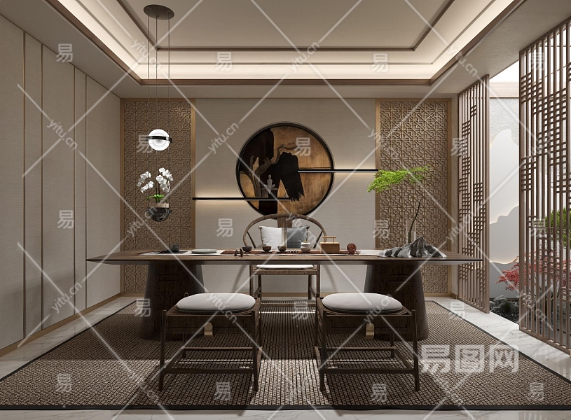 新中式风格茶室3D模型下载