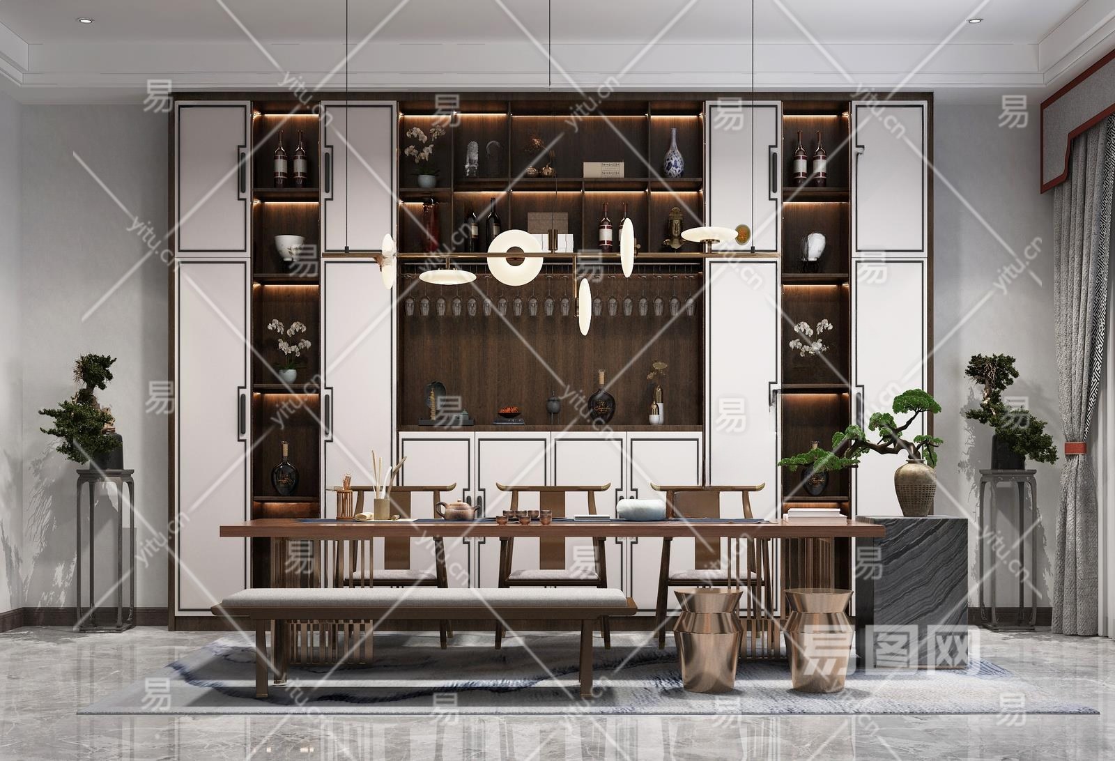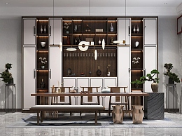 新中式茶室3D模型下载