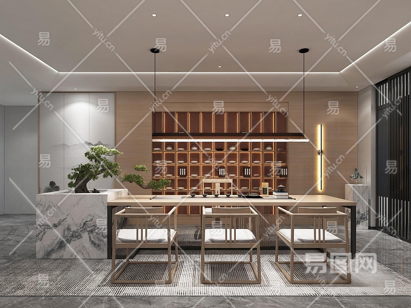 新中式茶室3D模型下载