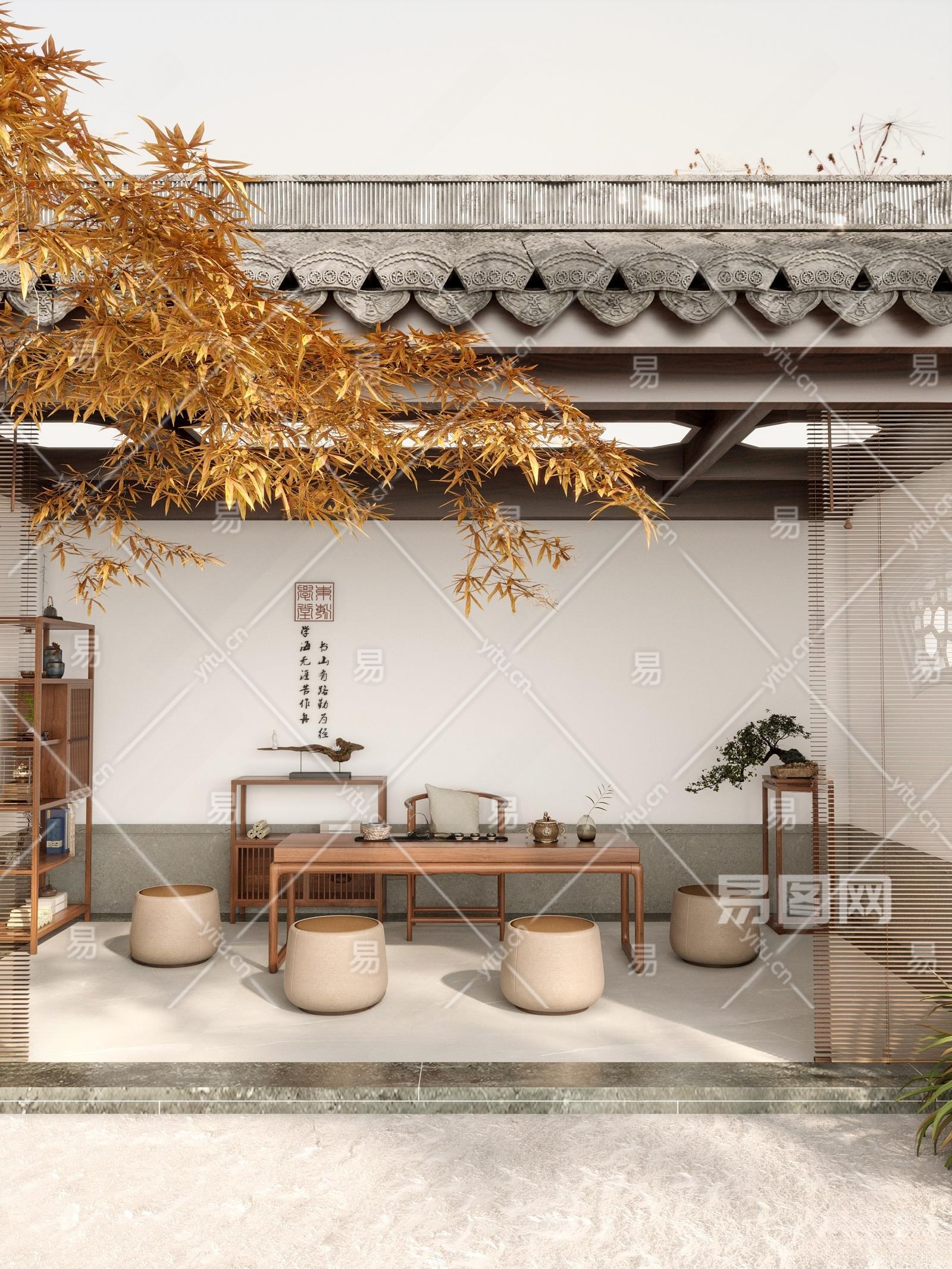 新中式茶室3D模型下载