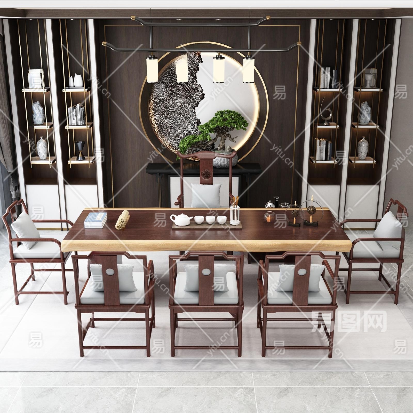 新中式茶室3D模型下载