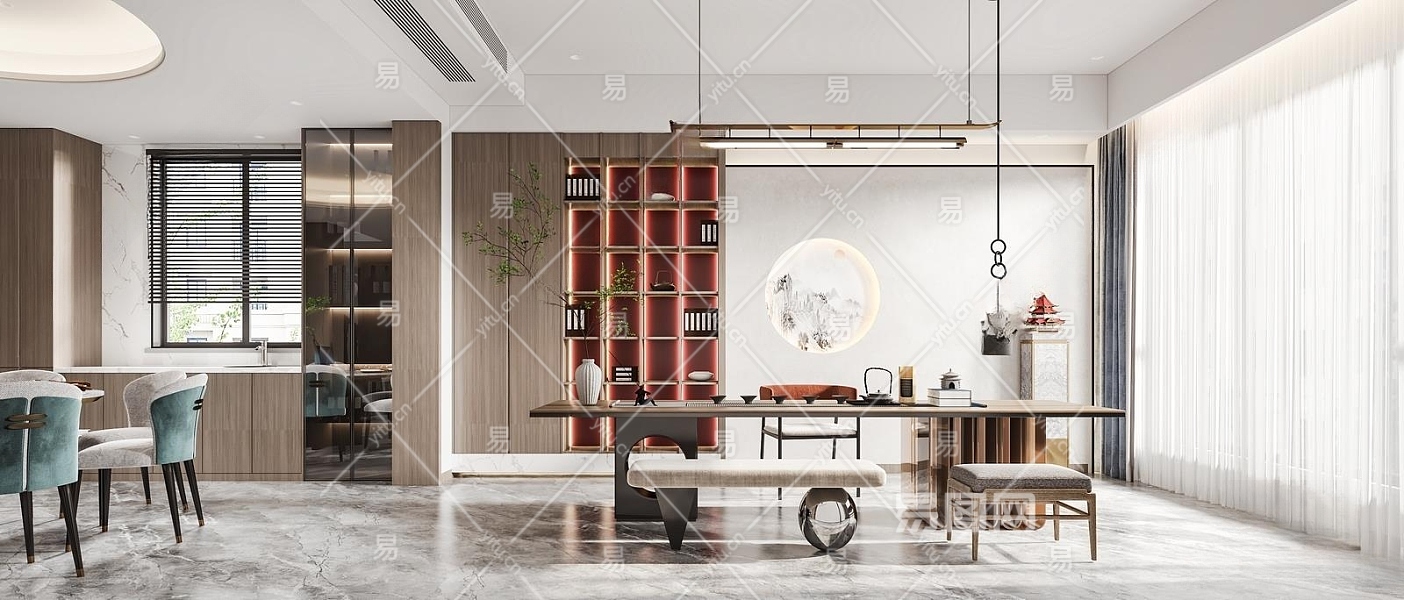 新中式茶室3D模型下载