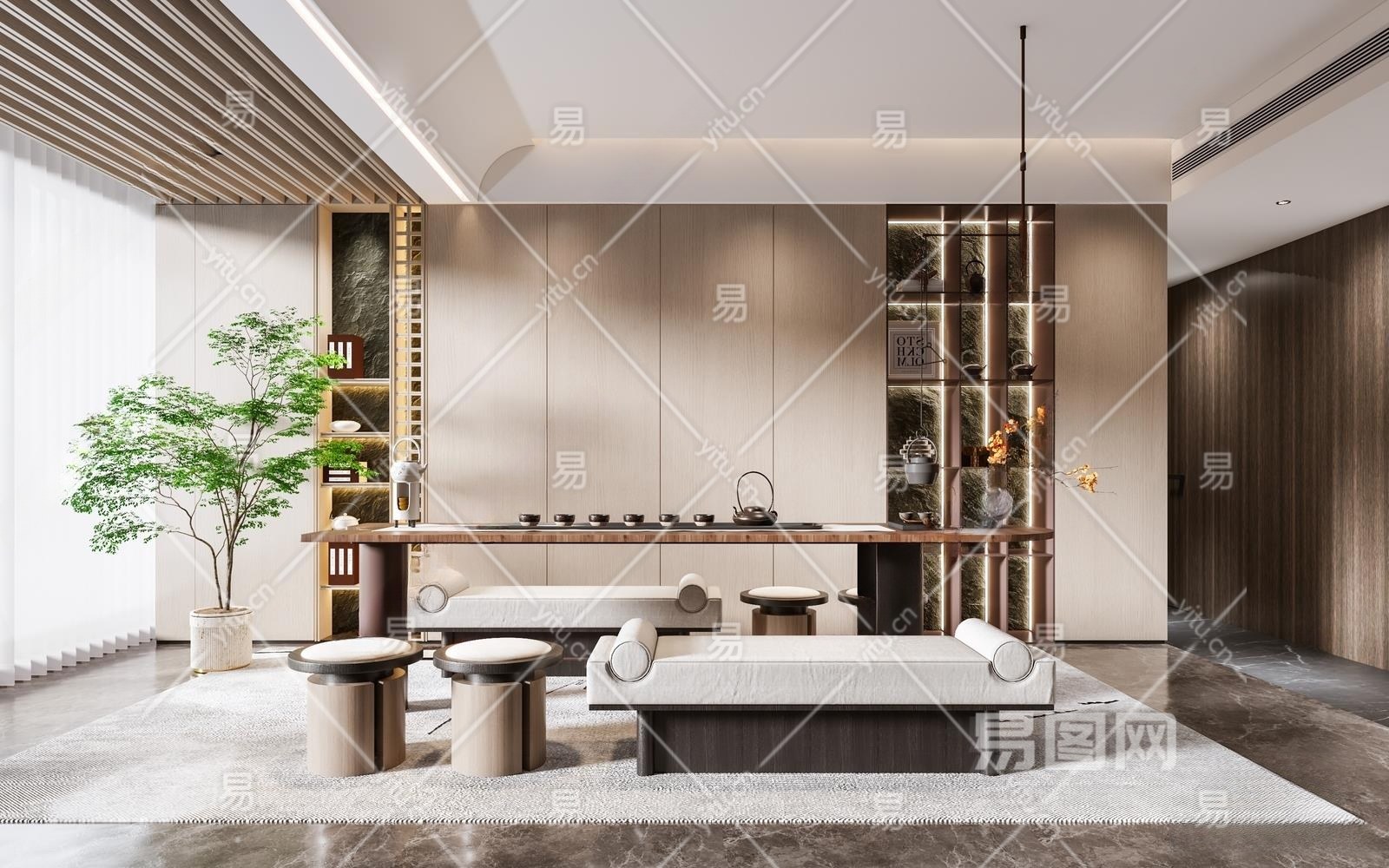 新中式茶室3D模型下载