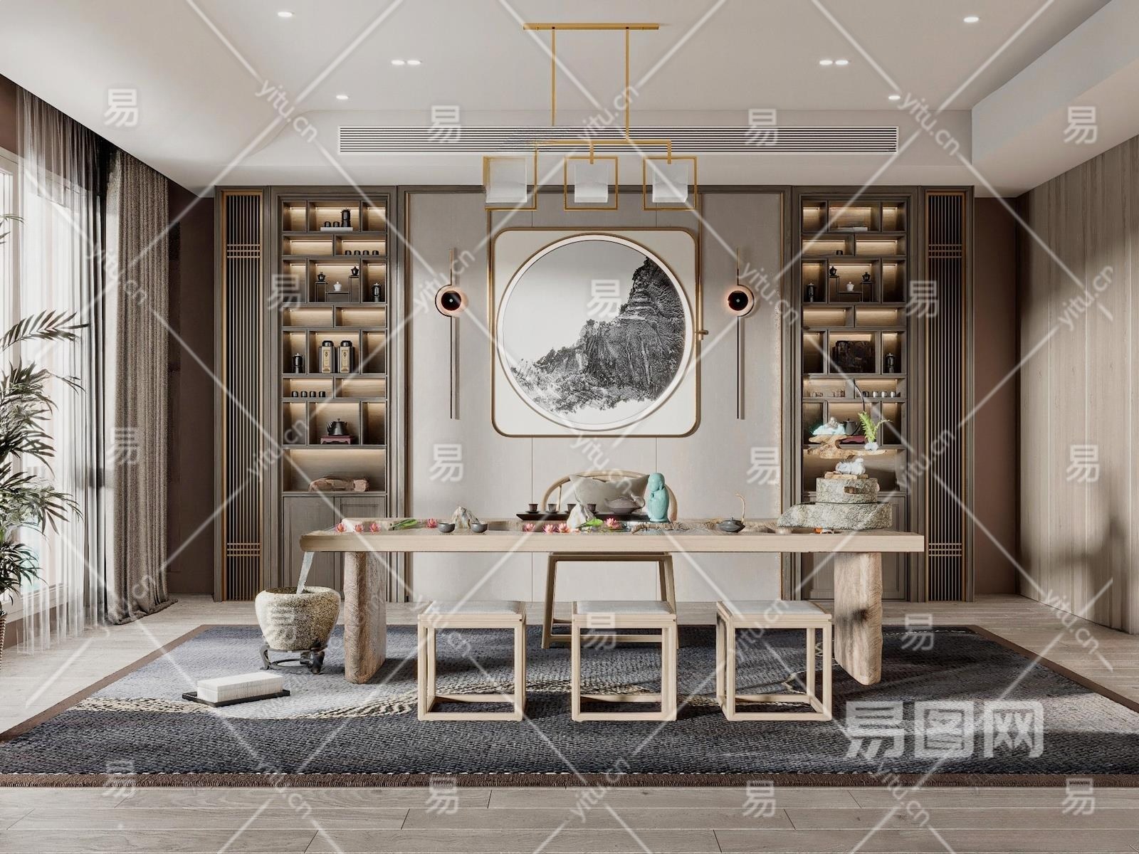 新中式茶室3D模型下载