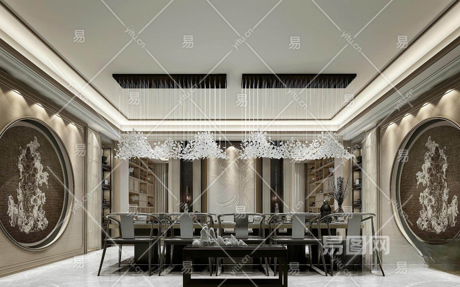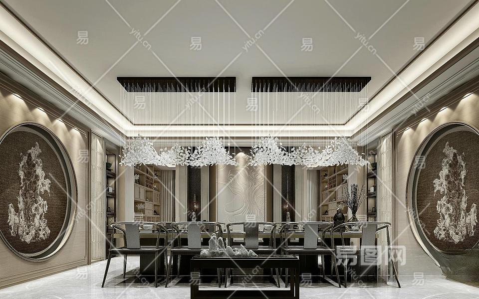 当前的位置:首页 > 3D模型 > 家装空间 > 茶室 > 新中式茶室 水晶吊灯 书柜 茶桌椅组合