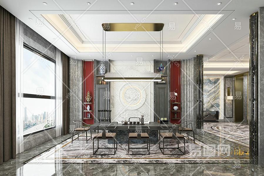 当前的位置:首页 > 3D模型 > 家装空间 > 茶室 > 新中式茶室 水晶吊灯 壁灯 浮雕背景墙 装饰柜 茶桌椅组合 窗帘