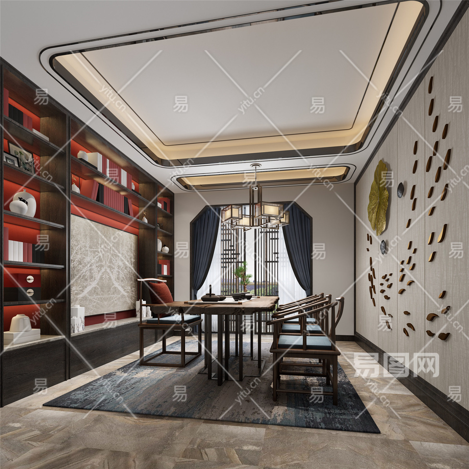 中式茶室 会客室 中式茶台书柜