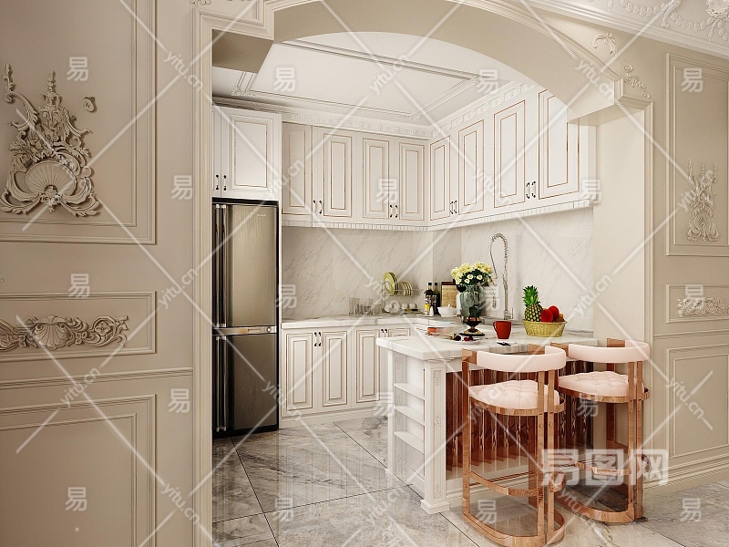 法式家居开放厨房3D模型下载