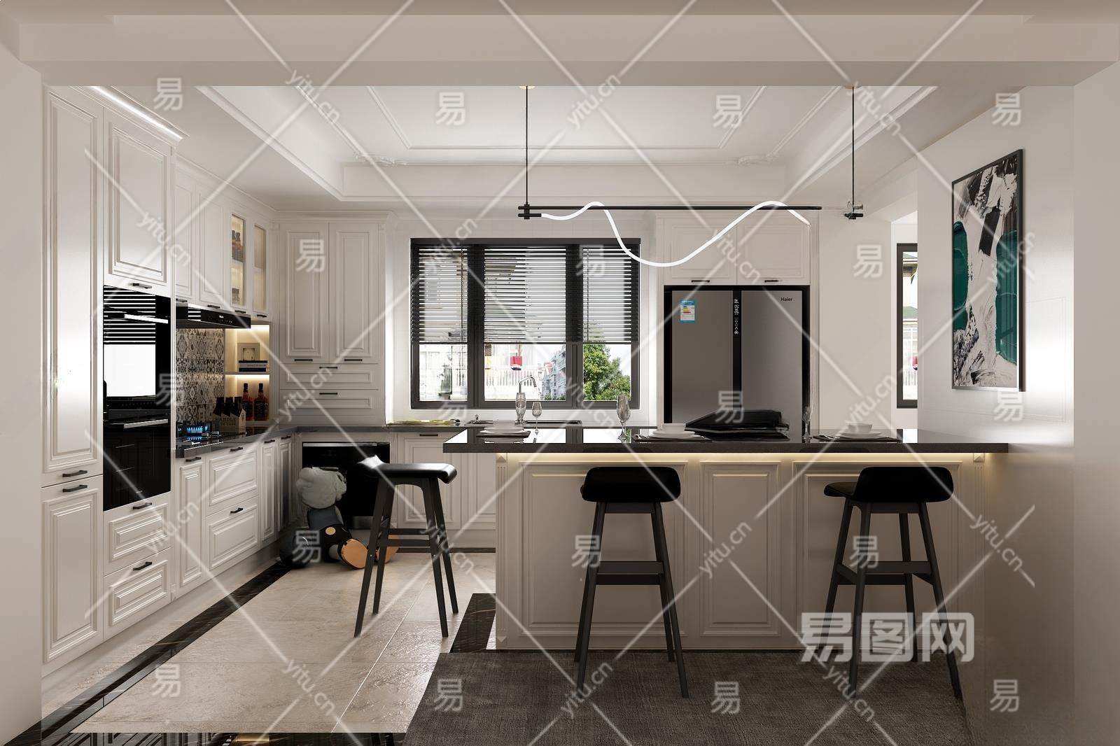 简欧开放式厨房3D模型下载