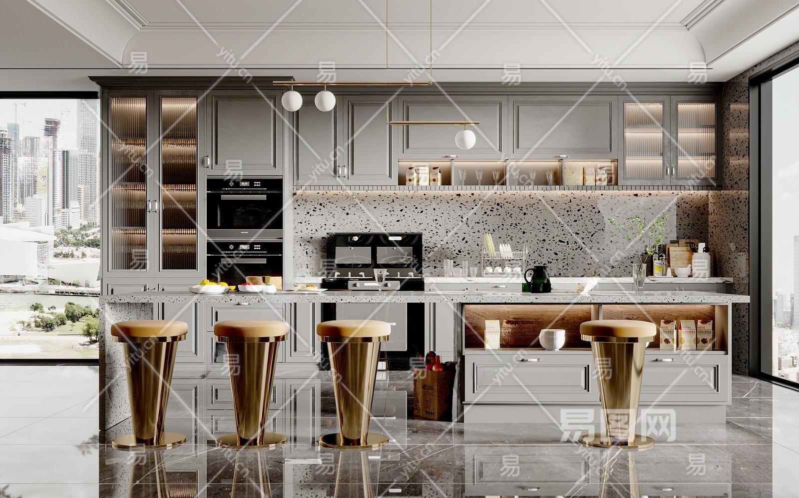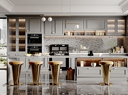 简欧开放式厨房3D模型下载